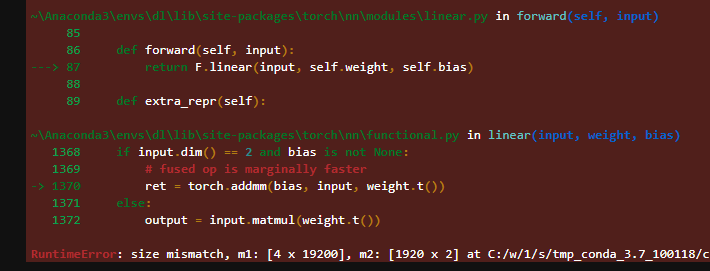 위 에러에서 mini batch size가 4개이고, 하나당 19200개의 데이터가 담겨있다는 뜻이다.