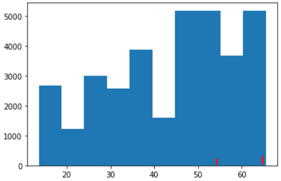plt.plot([66,66],[0.5,1], color='red', lw=1, linestyle='solid')