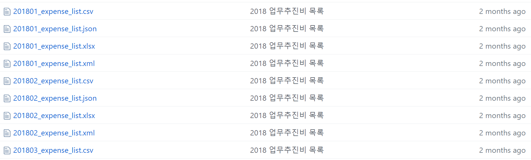 201801 음.. 2018년 1월 데이터겠군. expense 단어 몰라도 구글신한테 물어보면 비용이라고 알려줄테니 이것도 해석했다. list 이것도.. 목록. 굳 잡 보이.