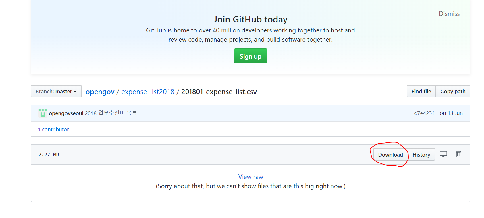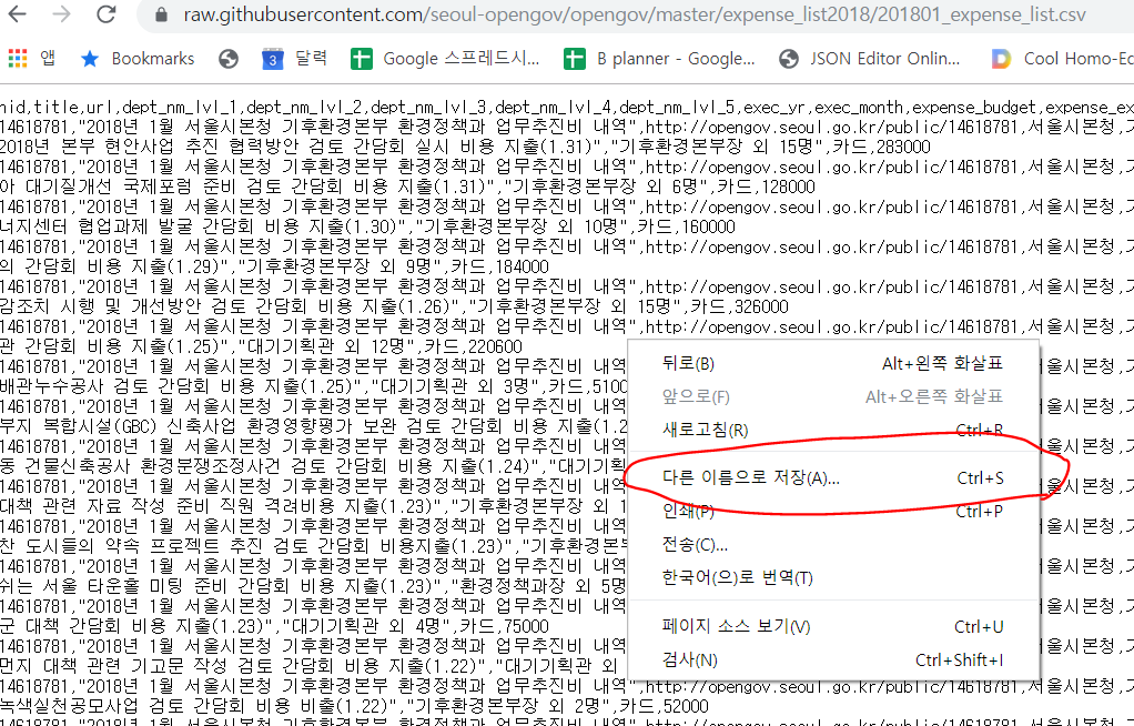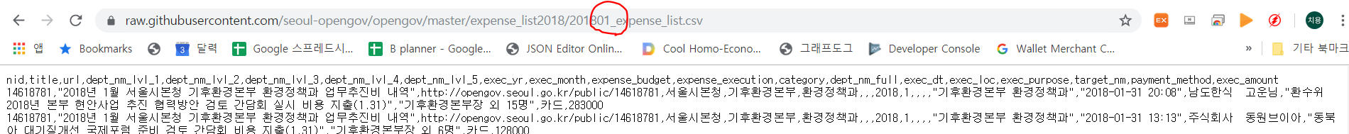 201801_expense_list.csv 링크를 클릭하고..