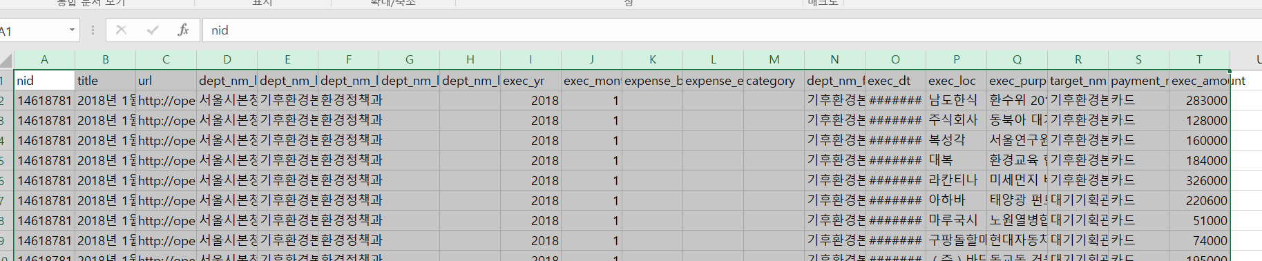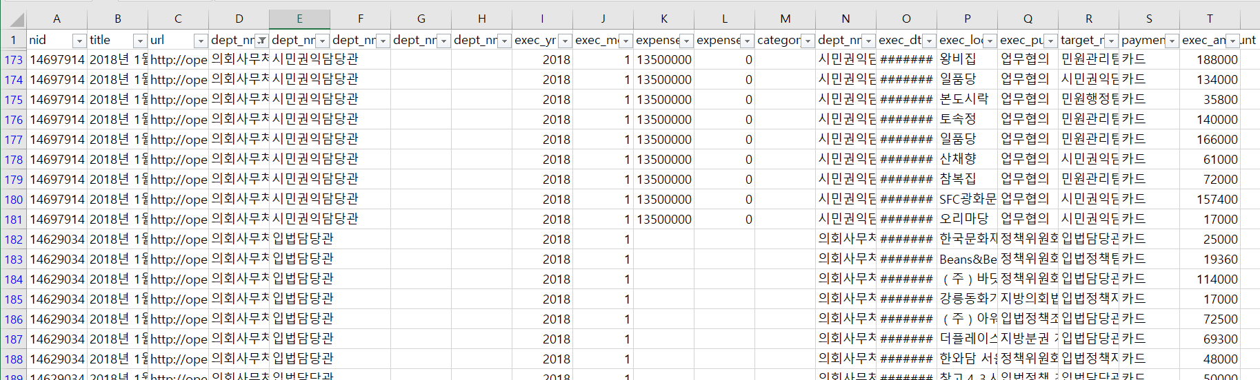 일단은 php 부분 지우고 http://opengov.seoul.go.kr/sites/all/blocks/git/seoul-opengov/opengov/opengov/expense_list2019/201908_expense_list.csv 부터