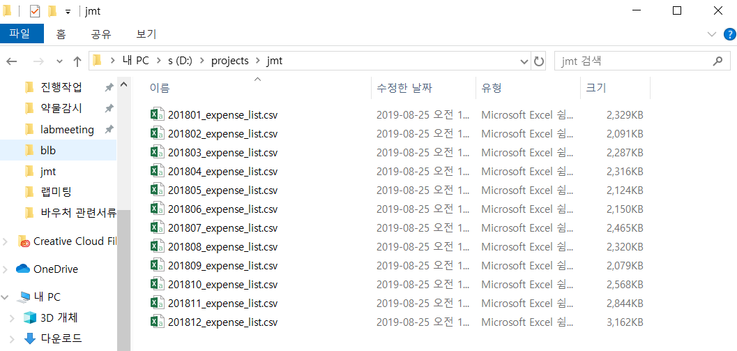 다운을 한 폴더에 받고나면...! 드디어 분석을 위한 데이터를 모았다!! ㅜㅜ