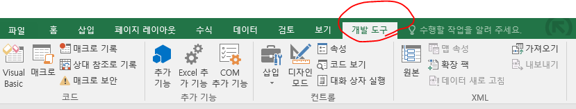 3. 리본 사용자 지정 -> 개발 도구 -> 확인