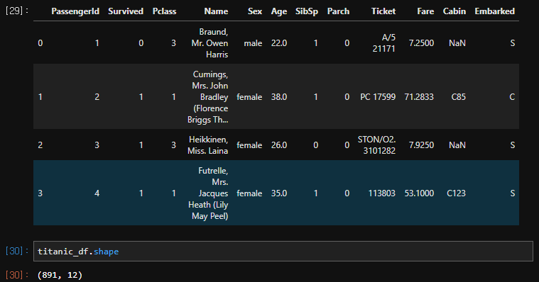 df.shape : 행 수, 열 수 꼴로 결과 반환
