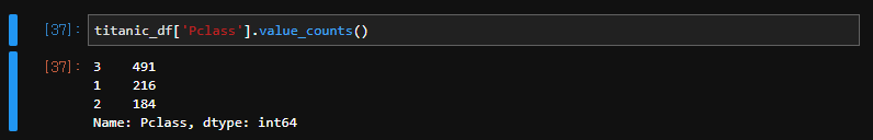 df.value_count() : 값 별로 숫자가 얼마나 되는지 세어줌 (R의 table과 같은 역할) 자주 쓰게 됨