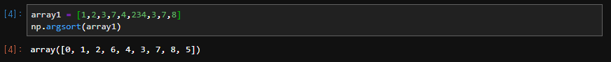 np.argsort(배열) : 정렬 후 원본 기준 순서(인덱스값) 반환