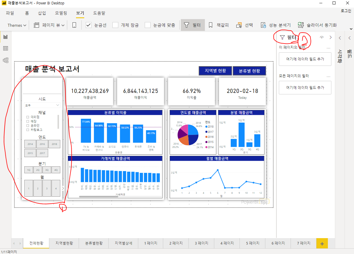 4. 페이지간 연계(드릴스루, 슬라이서 동기화)의 편의성