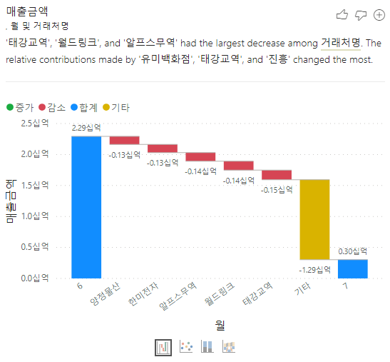 데이터를 보면 7월 매출이 급락해있는 것을 알 수 있다.