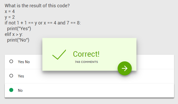 not = 틀려야 TRUE 하지만 1+1 ==y 가 TRUE이기때문에 FALSE or x==4(TRUE) and 7==8(FALSE) TRUE and FALSE 는 FALSE