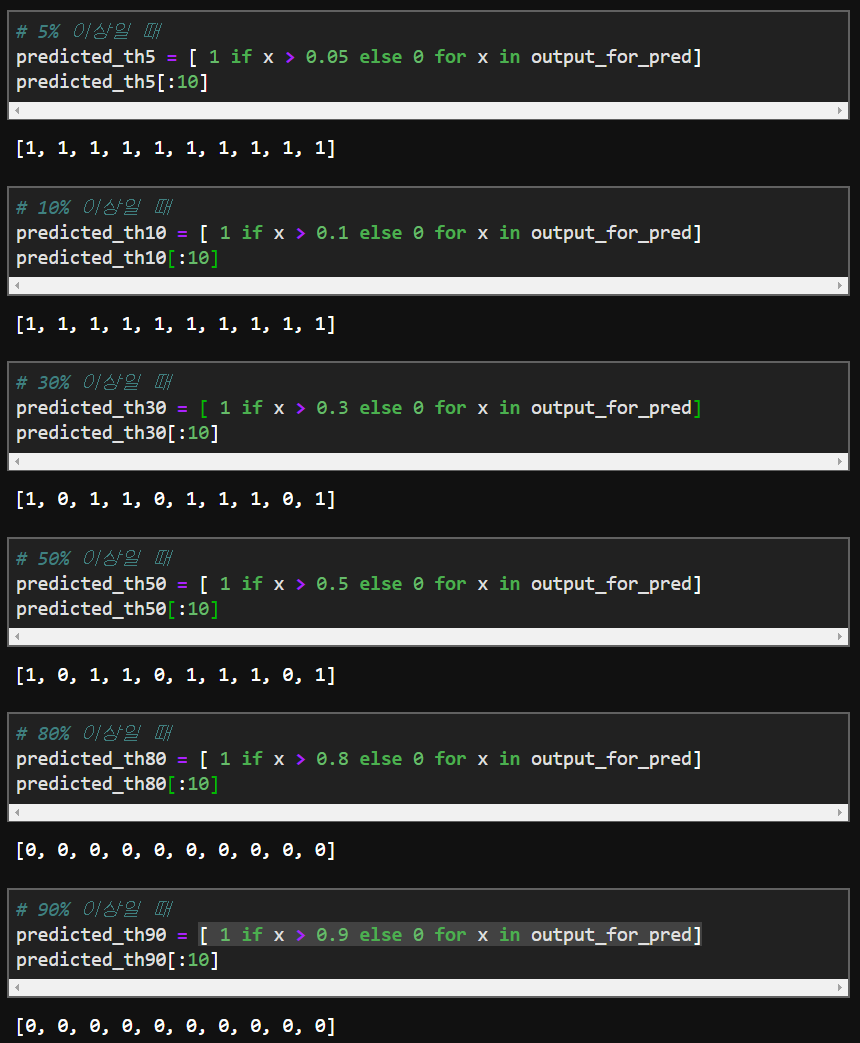 임계치를 조금씩 바꿔가며 확인할 함수를 만듭니다.(굳이 함수 안만들어도 되는데 보기 편하려고 만들었어요.)