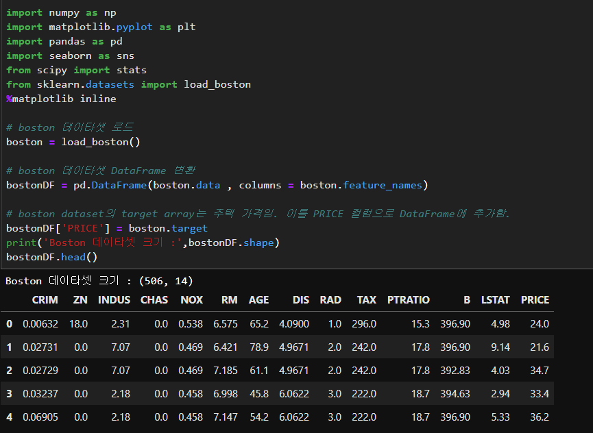 선형회귀를 하기 위한 라이브러리를 불러와주고 데이터를 불러와 변수를 설정해줌