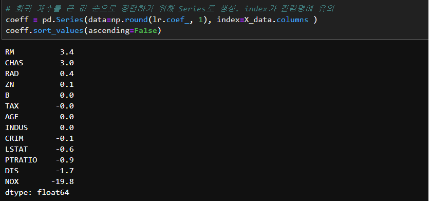 회귀 계수를 구하여 큰 값순서로 정렬해줍니다.