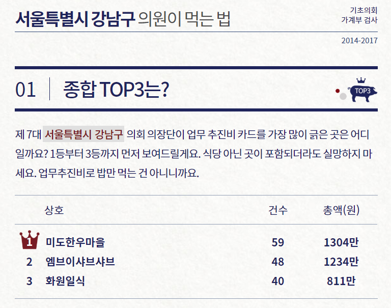 의슐랭 가이드, 시의원 지출 내역으로 맛집 찾기 같은 내용들을 발견했다.