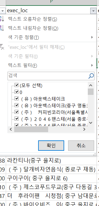 >> 왼쪽 분들이 겹치는 곳 리스트입니다. 처음 시작에서 선택한 어미가도 나오고, 실제로 조사해보면 비슷한 취향의 매장일 가능성이 높을 것 같습니다.(얼핏 이름만 보았을 때)