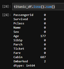 .sum() 을 이용해 각 항목(열)별로 몇 개의 결측값이 있는지 확인 가능하다.